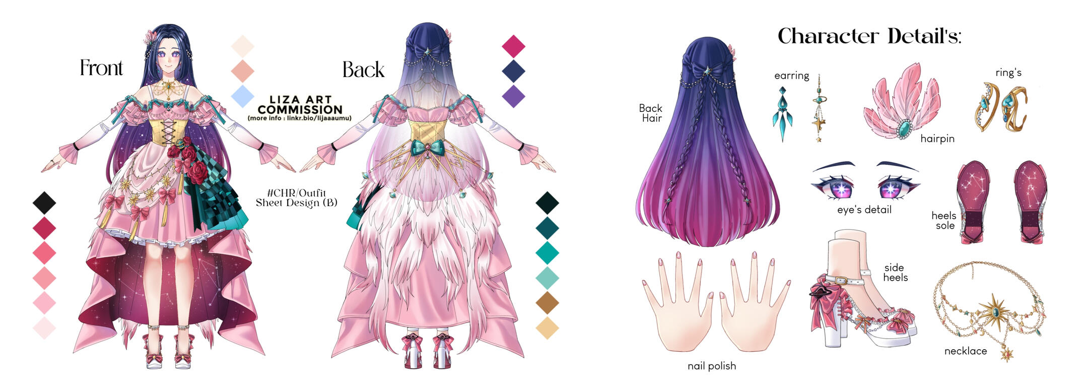 | CHR/Outfit Design sheet (B) | Front & Back (FB) + Color Pallete + Add detail max.5 | 550k | 165 USD |