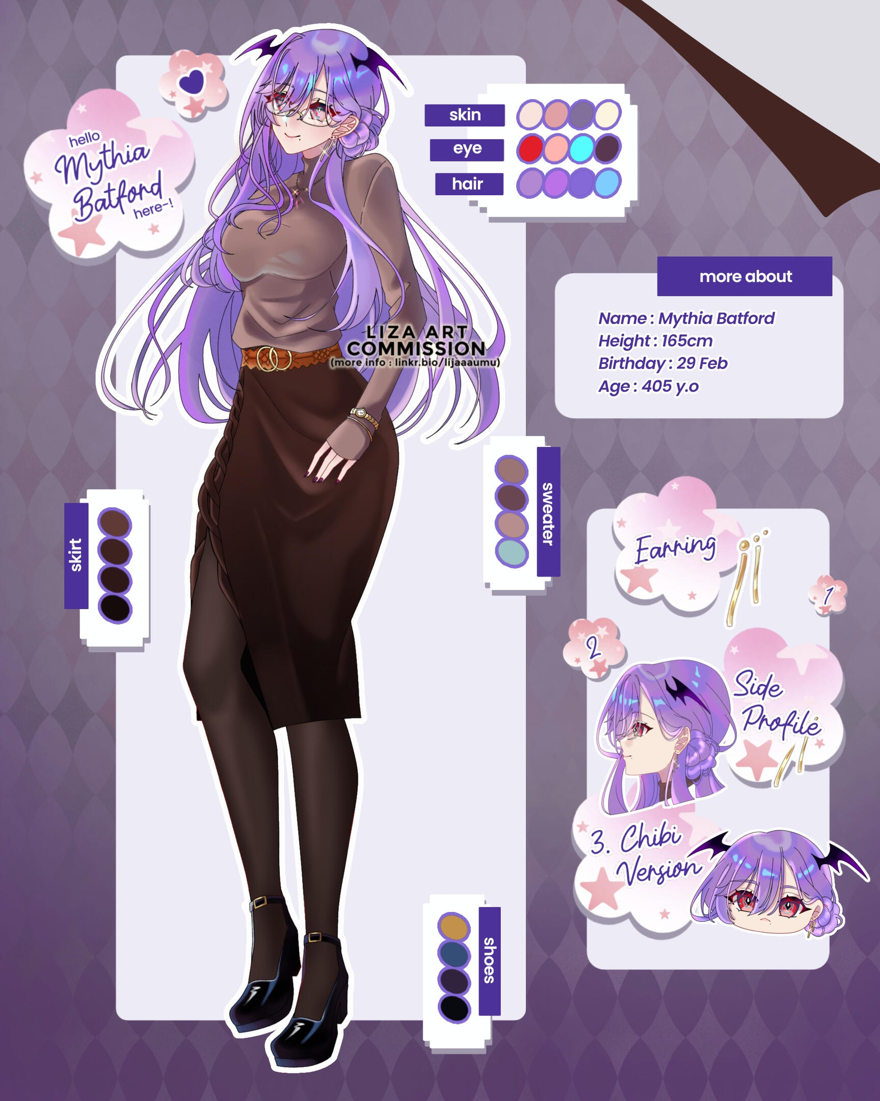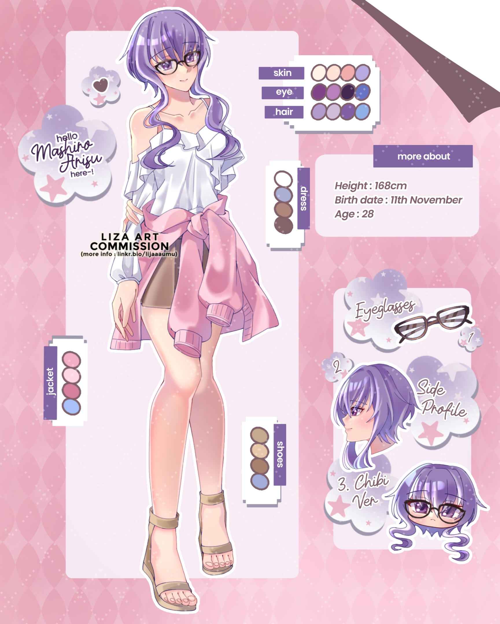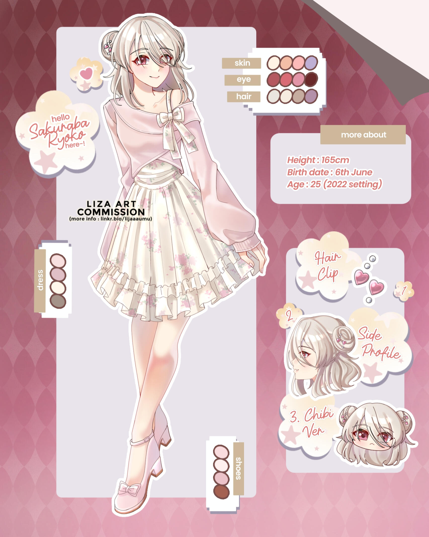 | CHR Sheet (A) | Front (FB) + Color Pallete + Add detail max.3 | 290k | 85 USD |