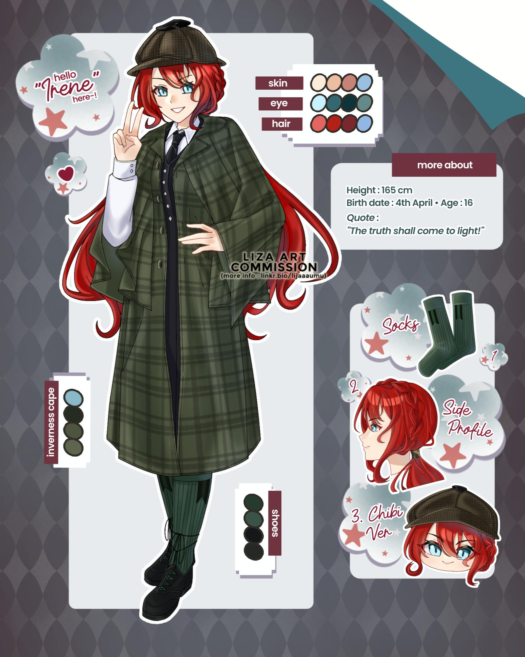 Detail that can be added : item/expression/accessories/side profil/headshot chibi